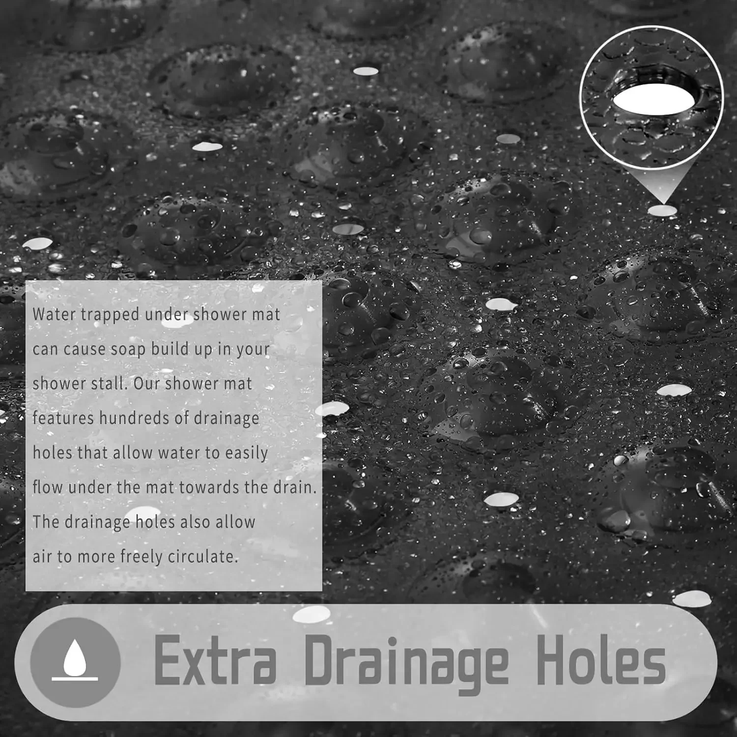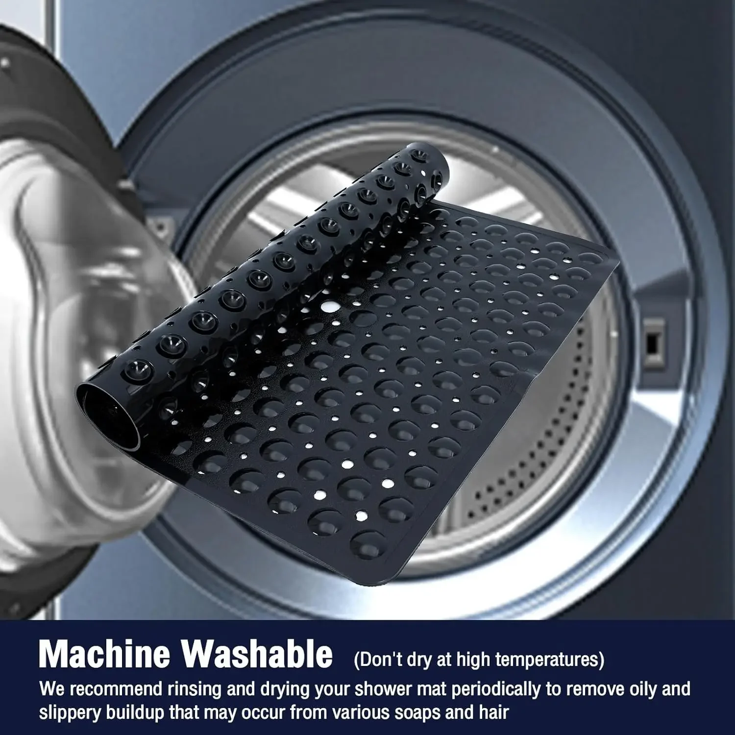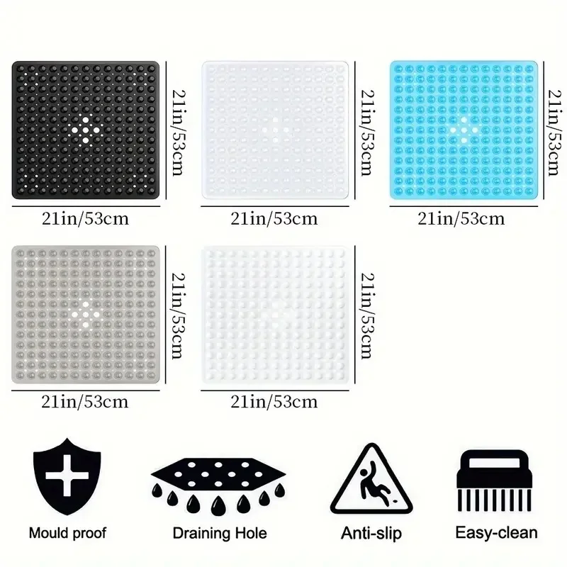 Upgrade your bathroom with this 21×21 inch square non-slip shower mat. Designed with strong suction cups, it stays securely in place to prevent slips and falls, giving you peace of mind every time you step in. The mat features drain holes that allow water to flow freely, keeping the surface dry and reducing the risk of mold and mildew. Drain holes for water flow
